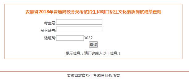 安徽省2018年普通高校分類考試招生和對口招生文化素質(zhì)測試成績查詢