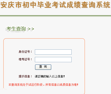 安慶市教育招生考試院 http://zhongkao.xuecan.net/anhui/chaxun/6926.html 中考成績查詢