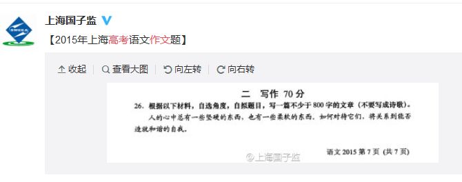 2015上海高考作文已公布,具體如下