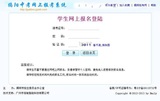 設(shè)為首頁(yè) | 加入收藏 | 揭陽(yáng)招考網(wǎng) | 幫助 揭陽(yáng)市中考網(wǎng)上報(bào)考系統(tǒng)入口http;//jyzkbm.jyzsb.com