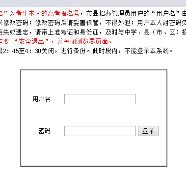 1、考生用戶的“用戶名”為考生本人的高考報名號,市縣招辦管理員用戶的“用戶名”由省招辦統(tǒng)一編發(fā)。