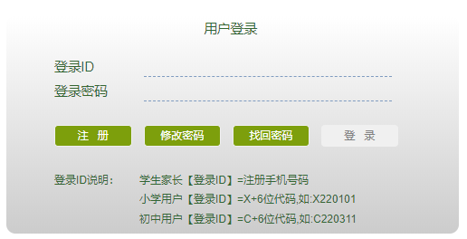 登錄ID說明: 學(xué)生家長【登錄ID】=注冊手機號碼