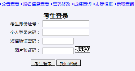 考生登錄 考生身份證號: 個人登錄密碼: 短信驗證密碼: