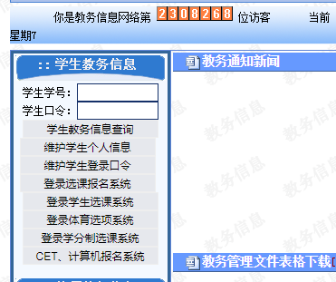 登錄學(xué)生選課系統(tǒng) 登錄體育選項系統(tǒng) 登錄學(xué)分制選課系統(tǒng) CET、計算機(jī)報名系統(tǒng)