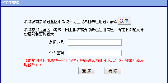 (參加過(guò)全區(qū)中考統(tǒng)一網(wǎng)上報(bào)名,密碼默認(rèn)為身份證后六位,登錄后請(qǐng)及時(shí)修改。)