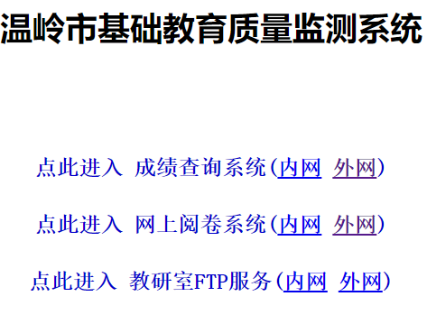 溫嶺市基礎教育質量監(jiān)測系統(tǒng)http://61.153.193.233:8000